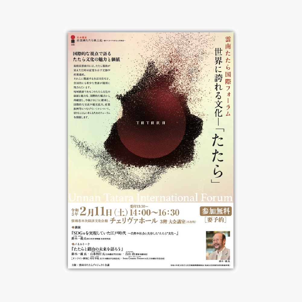 島根県雲南市のたたら文化伝承と活用について考える「雲南市たたらシンポジウム」。プレスリリース作成、web サイトへの配信など、プロモーション活動を担当しました。さらにシンポジウム内容をまとめたブックレットを編集協力。たたら文化の情報と知見を歴史や地域づくりなど、さまざまな角度から紹介しました。