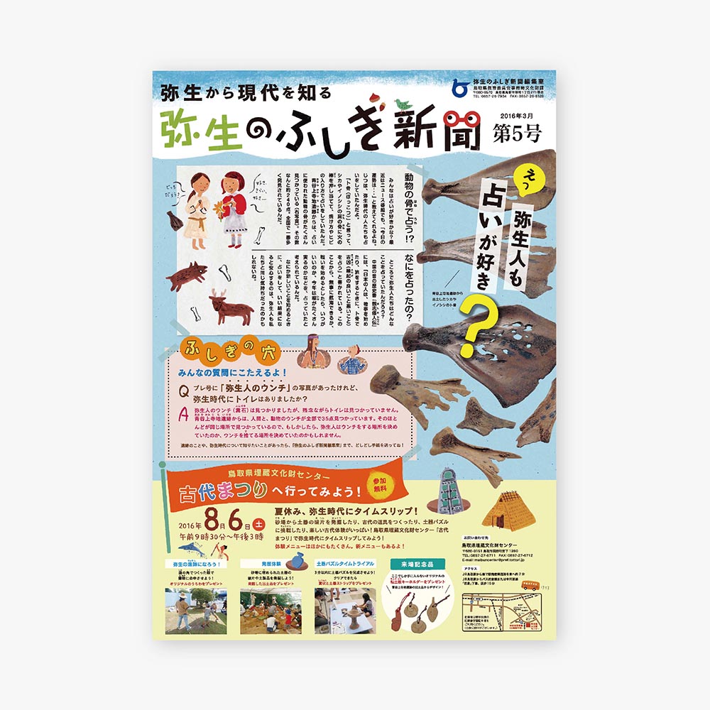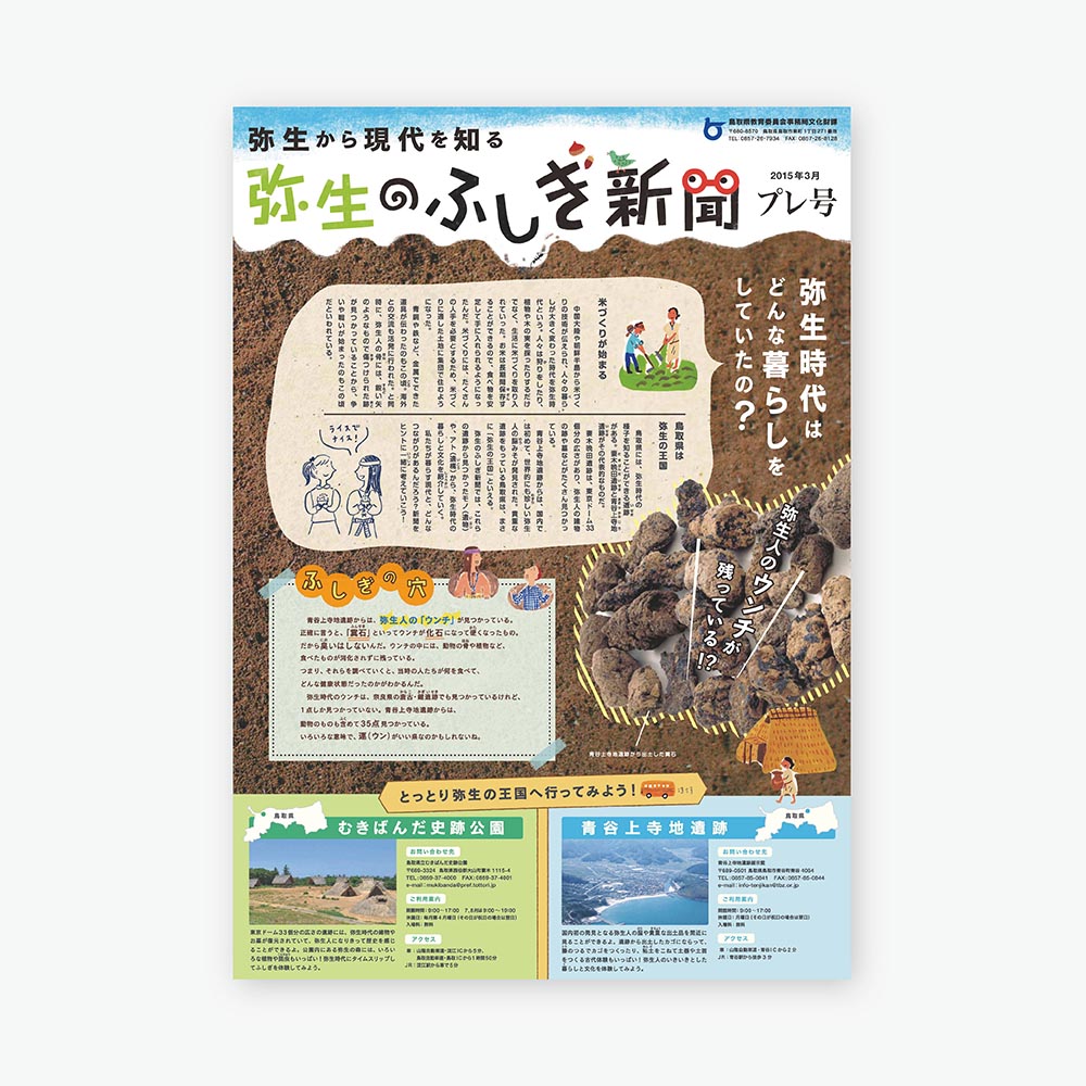 新聞 弥生のふしぎ新聞 鳥取県で発見された弥生時代の妻木晩田遺跡、青谷上寺地遺跡の魅力を伝える壁新聞。小中学生向けに「弥生時代を通じて現代を知る」をテーマに、遺跡の価値や、おもしろさを楽しく伝える内容です。B2 サイズの大きな誌面を生かして、実物大に近い迫力満点の遺物写真を掲載。鳥取県内の全小中学校へ配布しました。 クライアント:鳥取県 業務内容:企画・編集・制作 新聞 教育自治体の情報発信