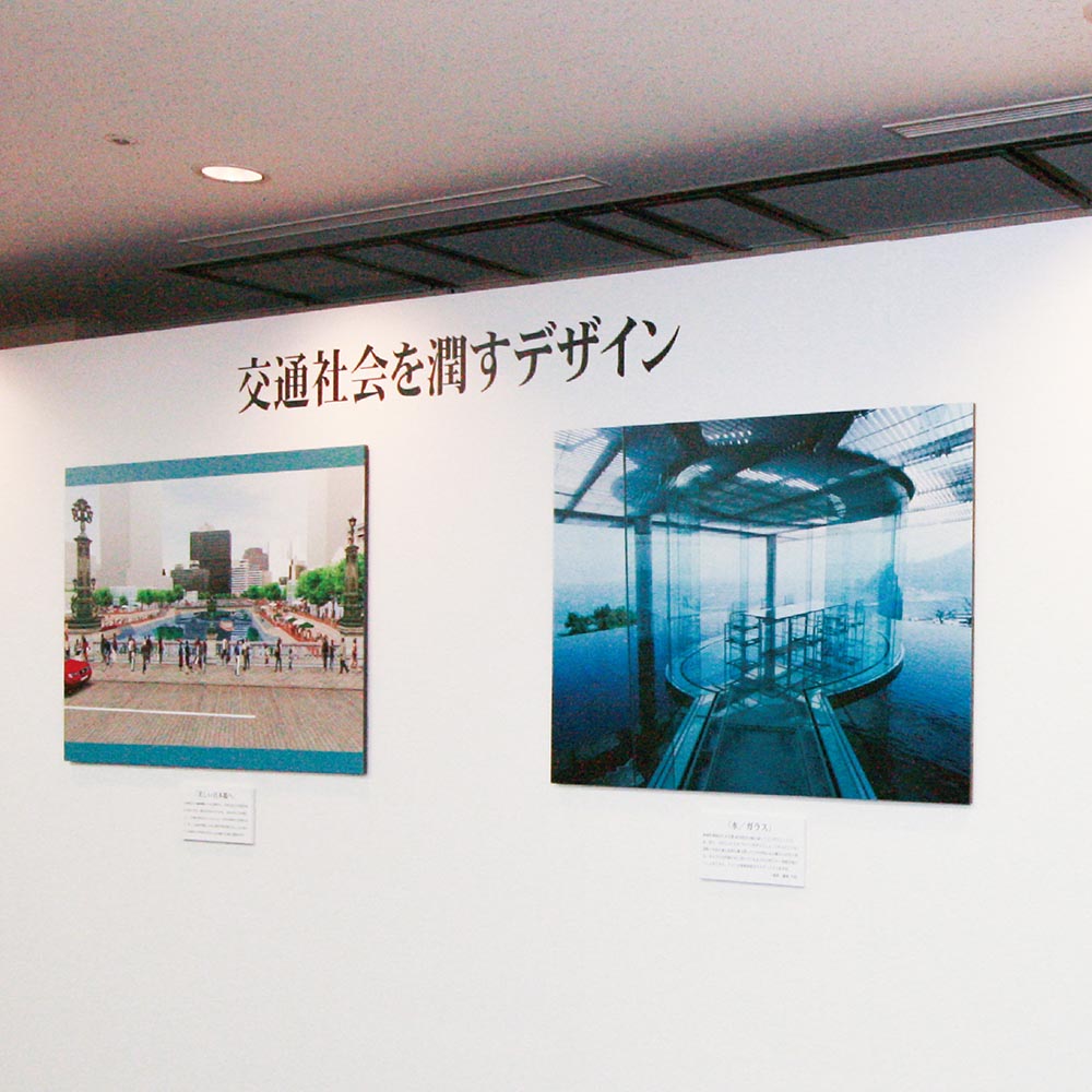 (公財)国際交通安全学会が開催したシンポジウム「交通社会を潤すデザイン」のパネル。講演内容に関連する画像をパネルにして、シンポジウム会場ロビーに掲示。説明文を入れずパネルいっぱいに画像を表示することで迫力が生まれ、来場者の目を引くと同時に、講演テーマへの関心を高めることができました。