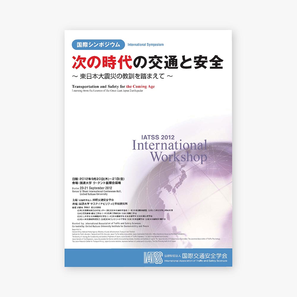 (公財)国際交通安全学会が開催した国際シンポジウム「次の時代の交通と安全〜東日本大震災の教訓を踏まえて〜」。事前告知のポスター、チラシ、当日配布のパンフレット、資料、事後報告としてホームページにアップする講演者インタビュー映像を制作。シンポジウムに関連する情報発信を総合的に担当しました。