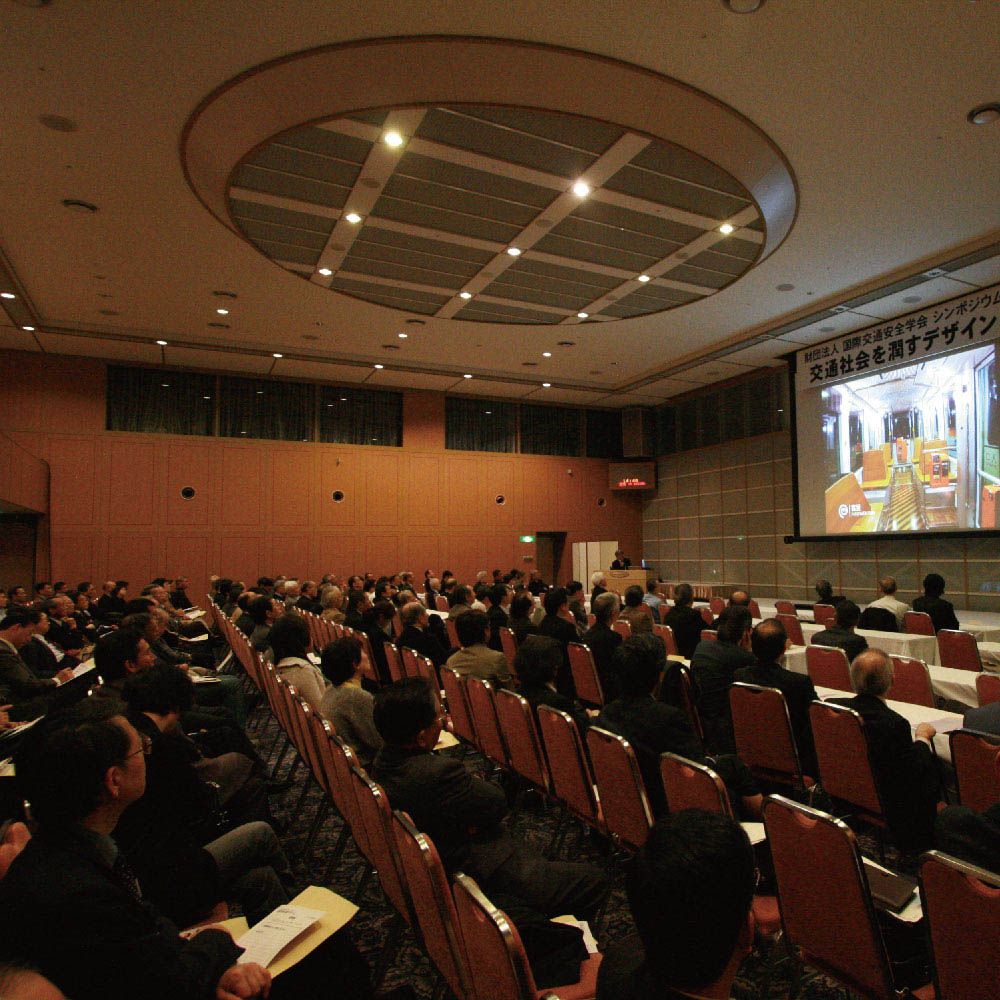 (公財)国際交通安全学会が開催した国際交通安全シンポジウム「交通社会を潤すデザイン」等。パンフレット、会場ロビー掲示のパネルを制作。そのほか、当日のシンポジウムの模様を含めて研究成果をまとめた書籍の編集を担当しました。議論や現場視察に同行し、研究内容への理解を深めて、制作にあたりました。